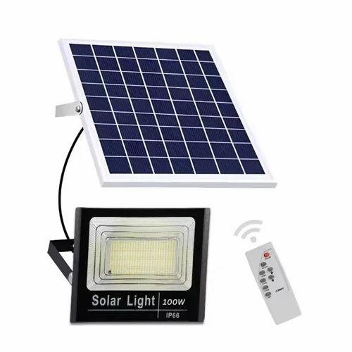 سیستم روشنایی خورشیدی سولار لایت مجموعه ای است که برای بهره گیری از انرژی سبز و تجدید پذیر خورشید کاربرد دارد. یک پک کامل خورشیدی میباشد که شامل پنل خورشیدی پلی کریستال و یک پروژکتور در سه توان 100-200-300 که با نور خوب و مناسبی که دارد میتواند در تمامی محل های مورد نیاز روشنایی را بدون نیاز به برق و سیم کشی تامین کند. از دیگر مزایای این ست روشنایی ریموت کنترل آن میباشد که دارای قابلیت های مختلف مانند تایمر برای 3 و 5 و 8 ساعت روشنایی و یا حالت اتومات که بلافاصله با غروب خورشید چراغ را روشن میکند و با طلوع آفتاب خاموش و باتری دستگاه با نور خورشید مجدد شارژ میشود و یکی دیگر از امکانات ریموت این ست روشنایی قابلیت تنظیم شدت نور میباشد که قابلیت کم و زیاد شدن را دارد. این سیستم ضد گرد و غبار، ضد آب و ضد پوسیدگی است. قابلیت نصب روی دیوار را دارد. حداقل شارژ 10 ساعت و مورد استفاده بعد از شارژ تا 12 ساعت می باشد. همچنین برد مفید کنترل آن 8-15 متر است. ابعاد پنل آن 365x305x15 میلی متر و وزن آن 986 گرم می باشد و ابعاد چراغ آن 270x220x70 میلی متر و وزن آن 1036گرم می باشد. این دستگاه دارای گواهینامه IP67 ضد آب بودن هم دارد.