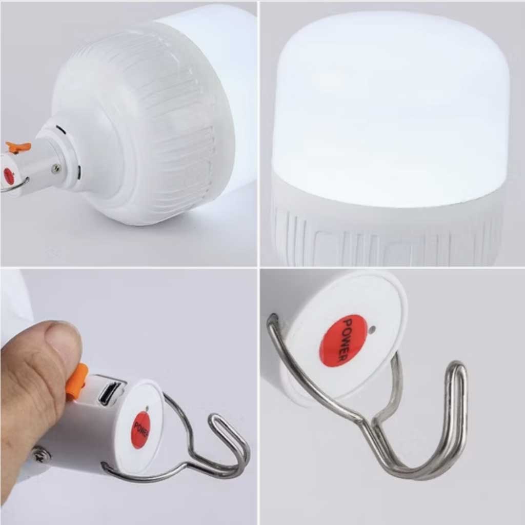 لامپ شارژی و چراغ LED قابل شارژ برای فضای باز – مناسب برای تراس، کمپینگ و مواقع اضطراری، با قلاب آویز و پورت USB